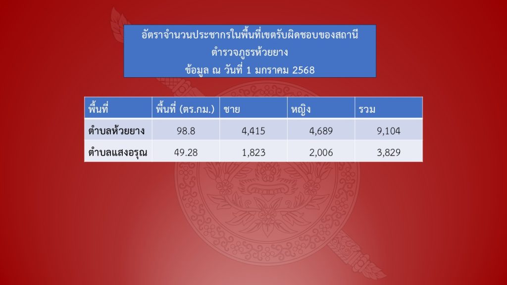 พื้นที่รับผิดชอบ ของสถานีตำรวจภูธรห้วยยาง
